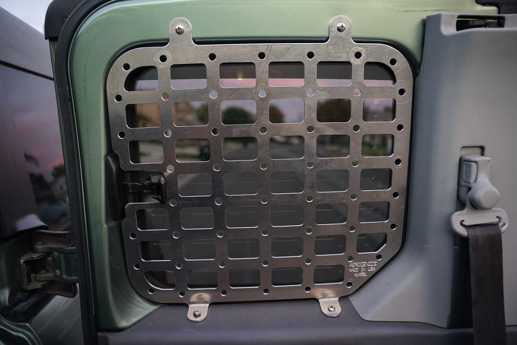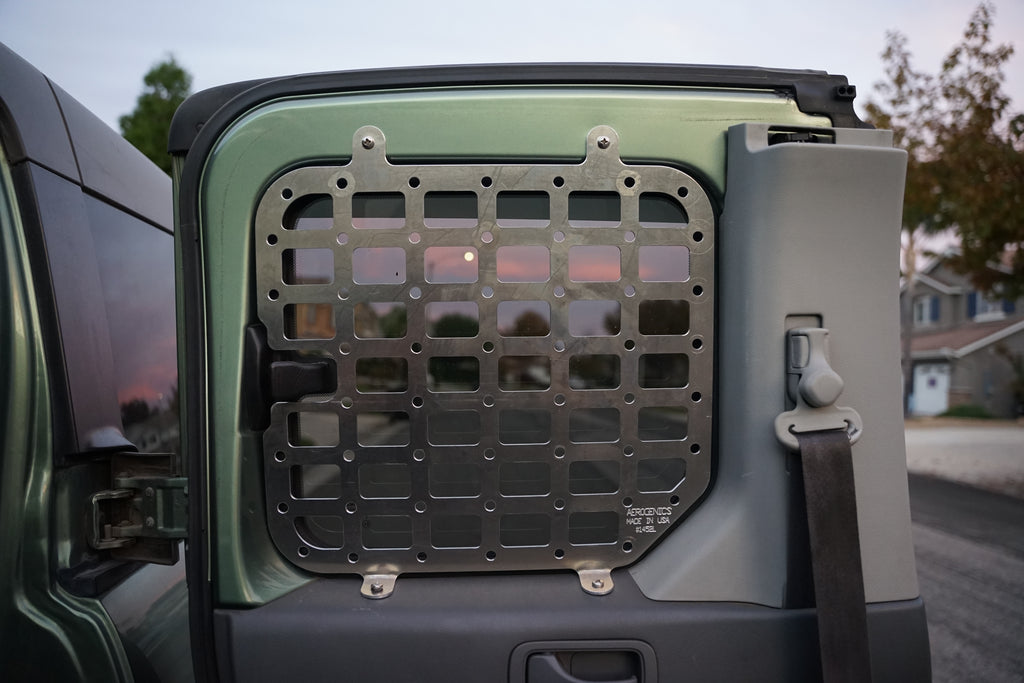 The Aerogenics Molle panel is designed and manufactured at our Corona, California location. All of our items are made from USA aerospace grade aluminum that will never rust or break. Our Molle panels are unique in that they're made of aluminum which provides a weight savings while still being able to hold just as much weight as the other steel options.